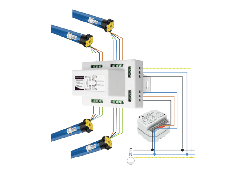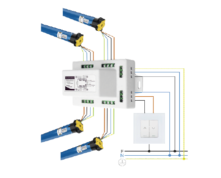 Este controlador grupal de 4 operadores compatible con motores cableados, permite conectar hasta 4 motores. De diseño funcional y simple ideal para espacios donde hay más de una persiana, toldo o estor que se quieran controlar a la vez.