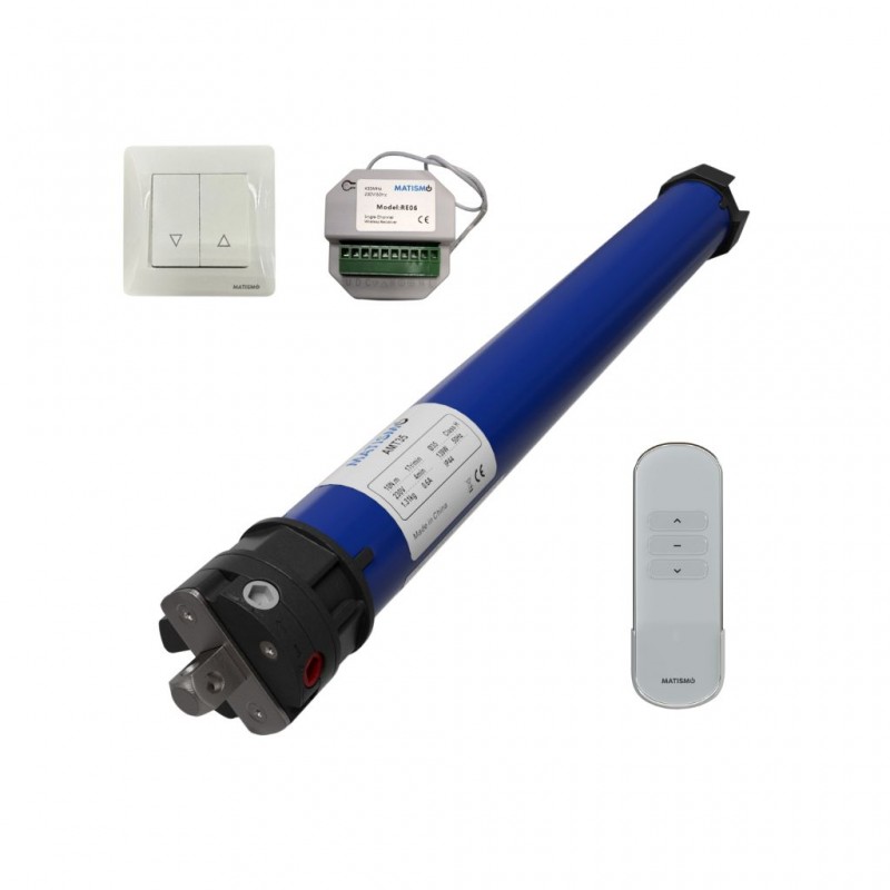 - Un motor tubular AMT35. - Un adaptador para eje octogonal de 40 mm. - Una varilla de configuración de finales de carrera. - Soporte Universal. - Un manual. - Un receptor de radiofrecuencia compatible también con Smart Home. - Un mando a distancia ME01. - Un pulsador blanco. |