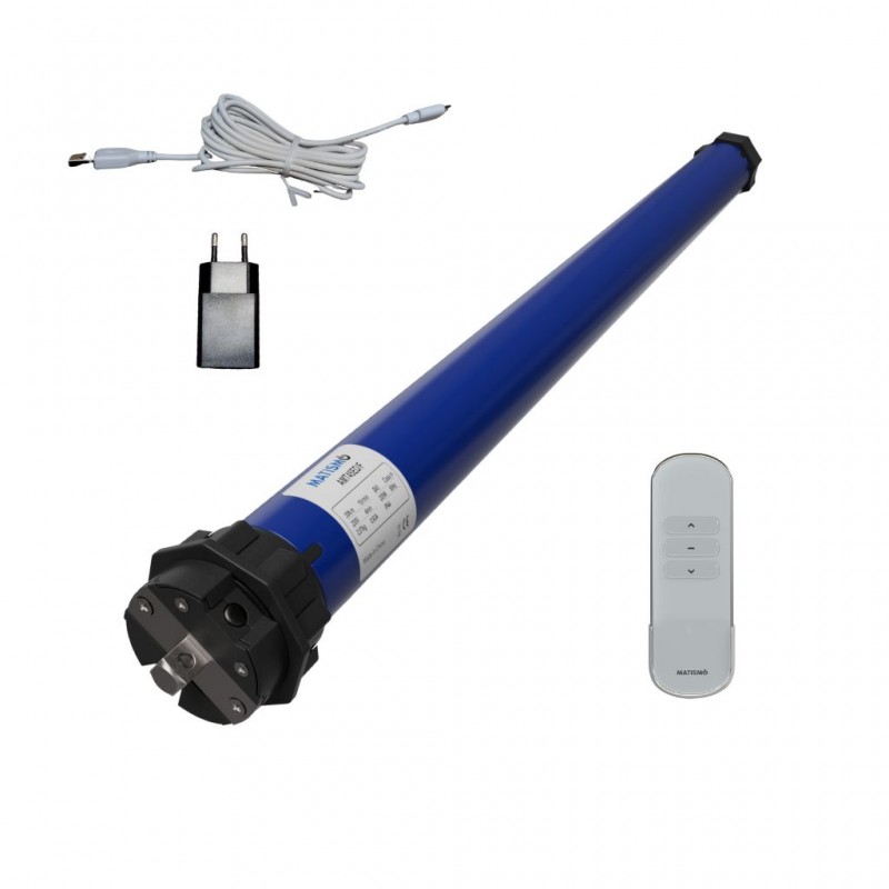 El AMT45BE puede con persianas de hasta 40 Kg, tiene batería de litio que se puede cargar con el cable tipo C más cargador y se controla con mando a distancia. Ideal para instalaciones donde no tengamos al alcance conexión eléctrica o queramos evitar la instalación de todo el cableado.