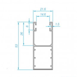 Este tipo de guías es el que utilizamos con nuestros cajones compactos. Es una guía que tiene un profundidad de 5,3 cm un hueco interior de 1,46 cm.