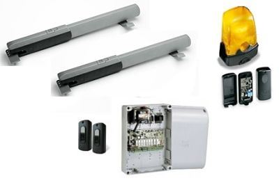 Utilice este kit para controlar automáticamente el funcionamiento de puertas batientes de dos hojas. Compatible con puertas batientes de hasta 3 m por hoja, de peso inferior a 400 kg, diseñado para uso residencial, incluye un mando a distancia.
